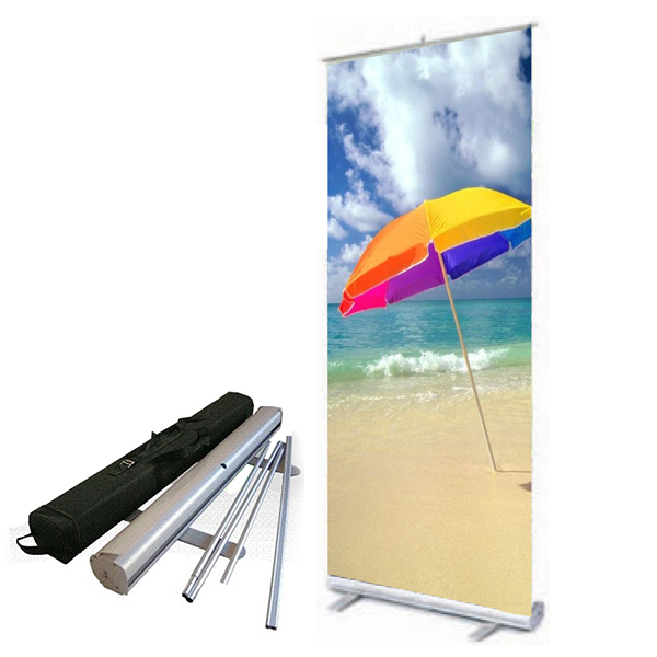 El porta pendón Roll Up en aluminio es una solución práctica y profesional para exhibir tu publicidad en eventos, ferias, puntos de venta o presentaciones. Cuenta con una estructura resistente fabricada en aluminio, diseñada para un armado rápido y fácil transporte. Incluye impresión en banner de alta calidad con resolución de hasta 1440 dpi, lo que garantiza colores vivos y una excelente definición de la imagen.